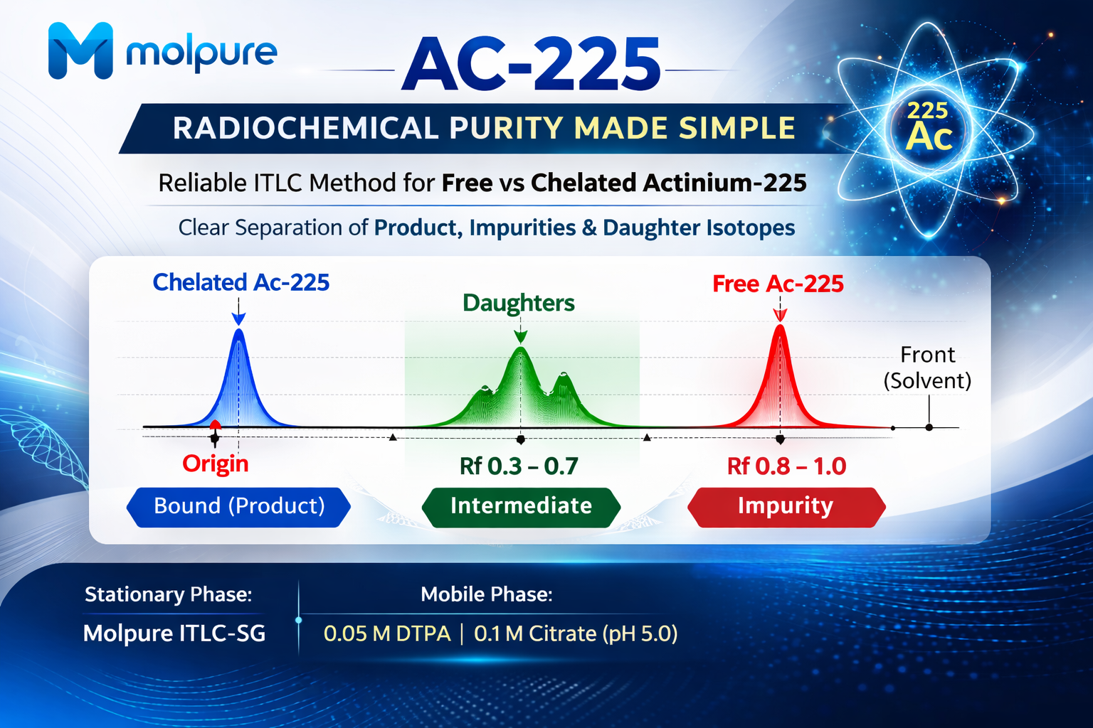 Direct Molpure equivalents for commonly used ITLC/TLC strips — no SOP changes required.